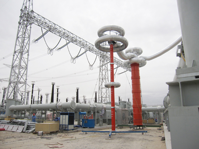 其中本次培訓(xùn)的重點(diǎn)是YTC850--5200kVA-260kV變頻串聯(lián)諧振耐壓試驗(yàn)裝置,該裝置主要針對220kV高壓套管、隔離開關(guān)的交流耐壓試驗(yàn), 220kV主變的交流耐壓試驗(yàn)設(shè)計(jì)制造。具有較寬的適用范圍,是地、市、縣級高壓試驗(yàn)部門及電力安裝、修試工程單位理想的耐壓設(shè)備。該裝置主要由變頻電源、勵磁變壓器、電抗器、電容分壓器組成,裝置具有過壓、過流、零位啟動、系統(tǒng)失諧(閃絡(luò))等保護(hù)功能,過壓過流保護(hù)值可以根據(jù)用戶需要整定,試品閃絡(luò)時閃絡(luò)保護(hù)動作并能記下閃絡(luò)電壓值,以供試驗(yàn)分析。整個裝置單件重量很輕,便于現(xiàn)場使用。裝置具有三種工作模式,方便用戶根據(jù)現(xiàn)場情況靈活選擇,提高試驗(yàn)速度。工作模式為:全自動模式、手動模式、自動調(diào)諧手動升壓模式.