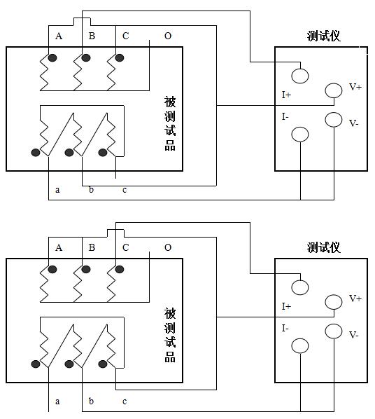 直流電阻測(cè)試儀測(cè)量低壓Rac、Rba、Rcb接線圖: