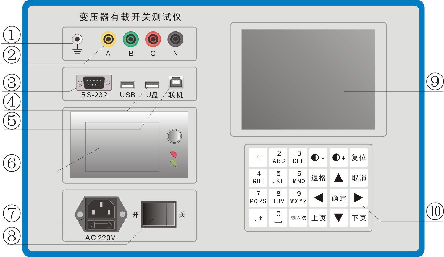 變壓器有載開關(guān)測(cè)試儀面板介紹以及產(chǎn)品概述