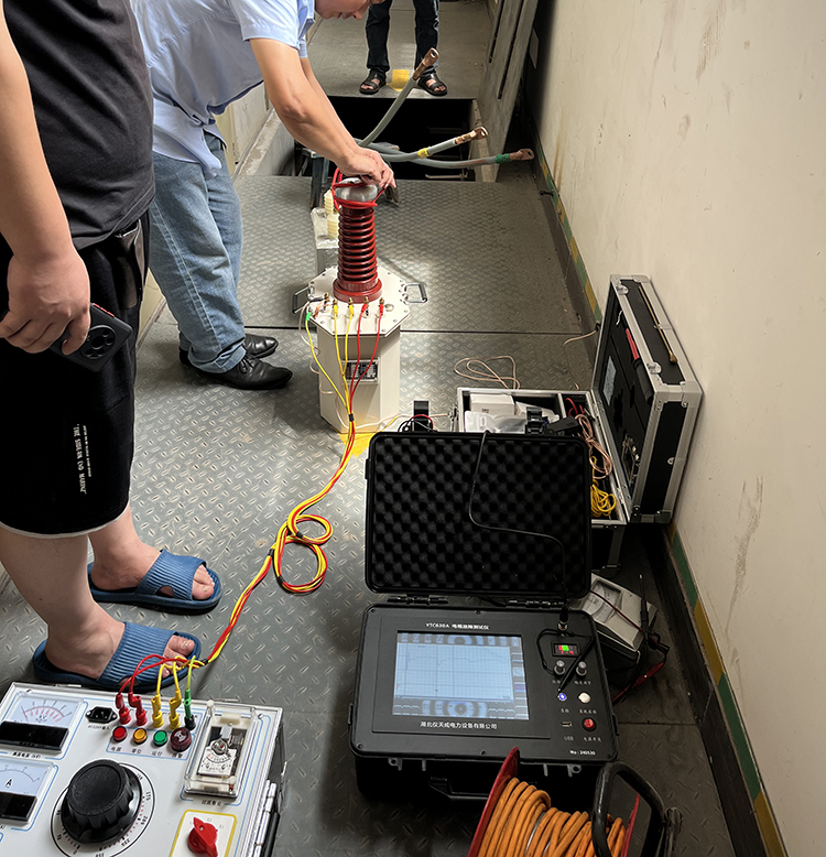 此次客戶那邊遇到的麻煩是電纜在運輸電過程中出現(xiàn)了供不上電情況,客戶那邊先自身對電纜做了基本的檢查,一時間也找不準(zhǔn)問題,于是就找到我司去幫忙找出電纜故障問題。我司趕到現(xiàn)場后,先咨詢了客戶相關(guān)的電纜類型的問題,如:電纜是否帶電,是帶鎧電纜還是不帶鎧的等等,摸清電纜的類型等一些相關(guān)信息后,我司技術(shù)人員便開始著手采取相應(yīng)的故障檢測措施了,首先我們做的是默認(rèn)的“低壓脈沖法”來檢測電纜故障情況,我們先是通過波形采樣,得到一個比較適合分析的波形后,然后對波形進(jìn)行分析,從波形我們可以知曉電纜的大致長度,以及故障點發(fā)生的大致一個區(qū)間位置,然后對那個故障區(qū)間位置進(jìn)行更進(jìn)一步的甄別查找,這樣便很大程度地減輕了工作人員查找故障的工作量,不過這次的電纜故障查找有點特殊,通過“低壓脈沖法”并不能很好地找出故障問題,于是后面又采取了“高壓閃絡(luò)法”進(jìn)行檢測,高壓閃絡(luò)過程,便需要利用到高壓升壓試驗裝置來對電纜進(jìn)行升壓,從而來得到更明顯的波形。