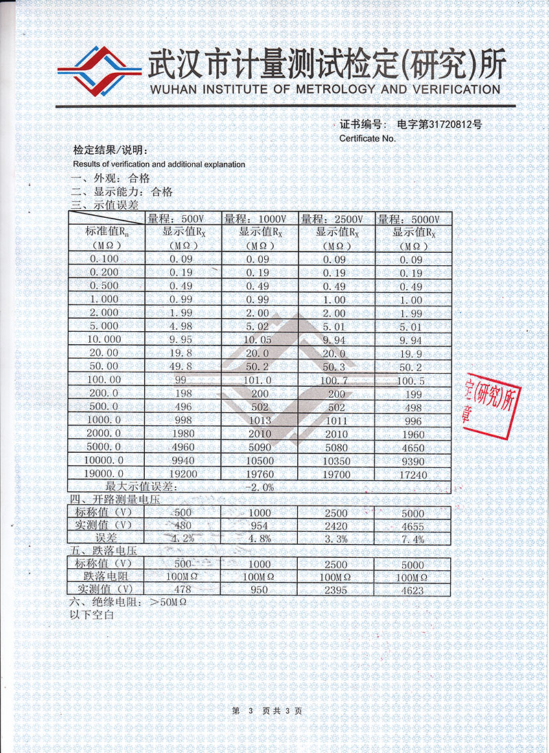 | 分辨率 | 0.01 MΩ,0.1 MΩ,1.0 MΩ,10.0 MΩ | |